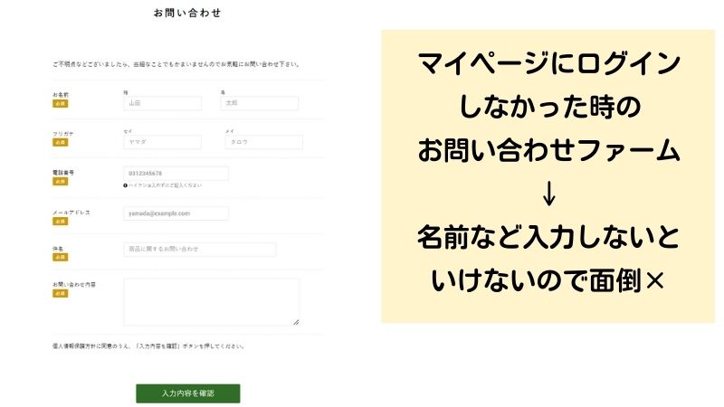 注)マイページにログインしないと、名前などの入力が必要なフォームがでます。